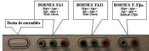 En la figura 4 se muestra la fuente de alimentación FAC 304A de Promax, indicando cada una de las partes que la componen.