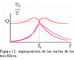 Si se realiza un barrido de frecuencias a la entrada del circuito, midiendo el valor de la tensión a la salida y se traza un gráfico en el que se represente la relación entre la tensión de salida y la de entrada, Us/U, en función de la frecuencia, se obtiene las curvas trazadas en la figura 11, para cada filtro.