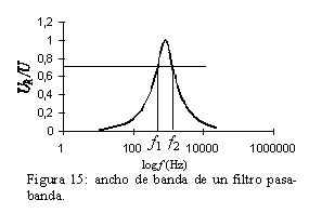 Nota: se define el ancho de banda de un filtro pasa-banda como el valor f1-f2, siendo f1 y f2 las dos frecuencias correspondientes a una ganancia: