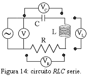 El circuito que se va a analizar está compuesto por tres elementos: resistencia, bobina y condensador. Se analiza su comportamiento tanto al conectarlos en serie (figura 2) como cuando están en paralelo (figura 3). En particular, se medirá la intensidad que circula por el circuito al aplicar una diferencia de potencial alterna entre sus terminales y a distintas frecuencias. La relación entre tensión e intensidad permitirá conocer la impedancia del circuito.